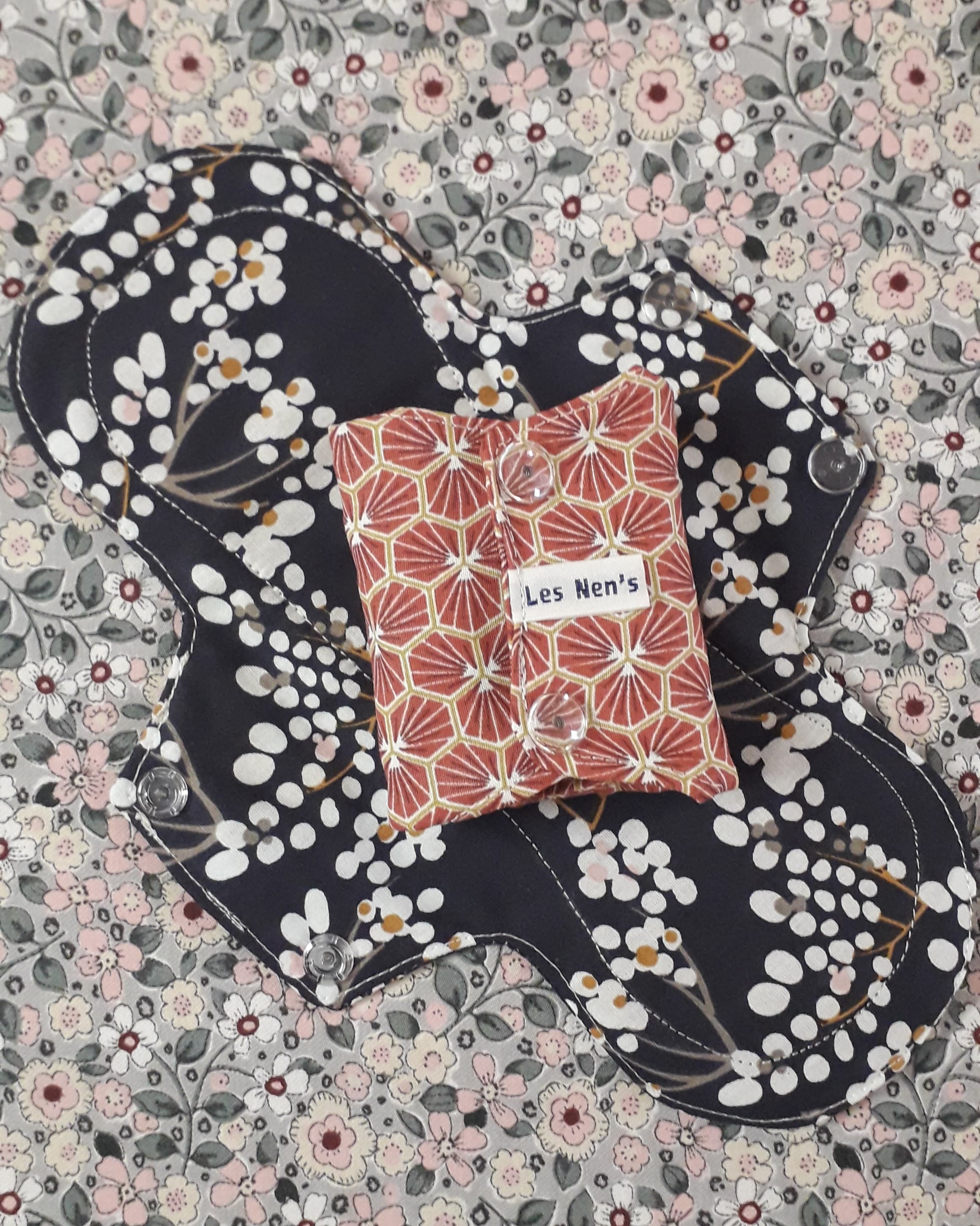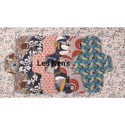 Les protection hygiéniques lavables se composent d'un tissu en coton oeko-tex (dessus et dessous), d'un trempeur composé de deux épaisseurs d'éponge de bambou(une seule pour le PSL) et d'un tissu imperméable. Deux pressions permettent de les maintenir en place (une seule sur les psl), mais également de les replier sur elle-mêmes.